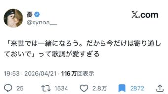 嫌儲 女の子、究極の愛を語る「『来世では一緒になろう。だから今だけは寄り道しておいで』って歌詞が愛すぎる」2.8万いいね