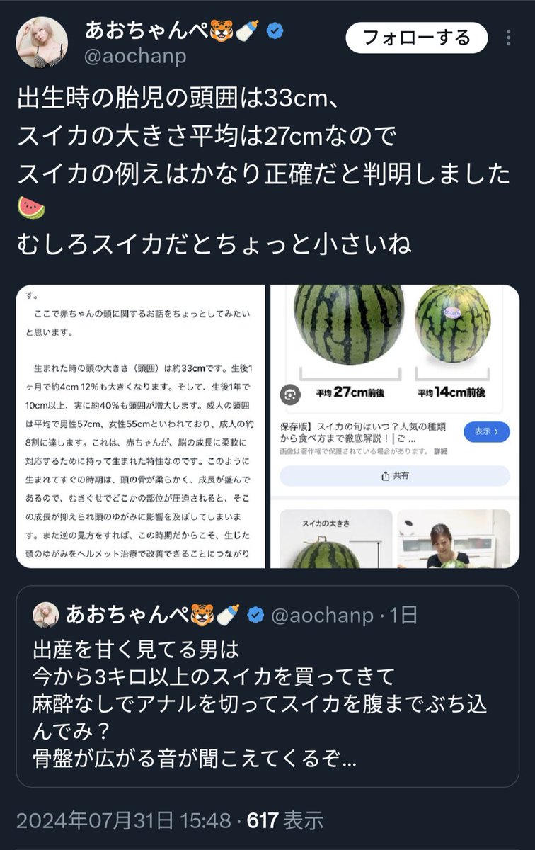 逆にスイカサイズの頭の新生児見た事あんのかねこの人