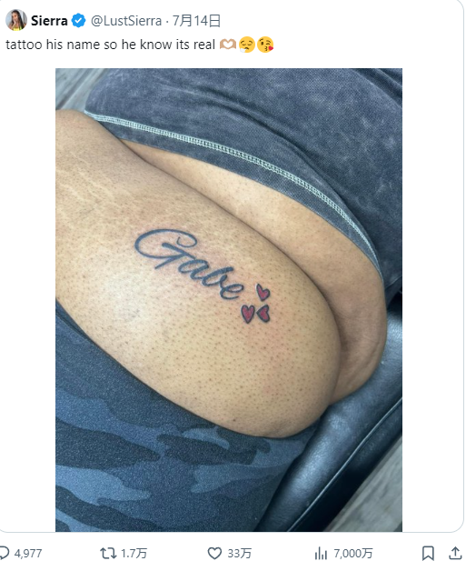 タトゥーを公開した女さん、一体どこの部位に彫ったのかわからず世界中が推理しだす