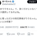 【正論】頂き女子りりちゃん懲役8年6ヶ月判決にX女子ブチギレ 「じゃあ子供をレイプした男は死刑にしろ!!」