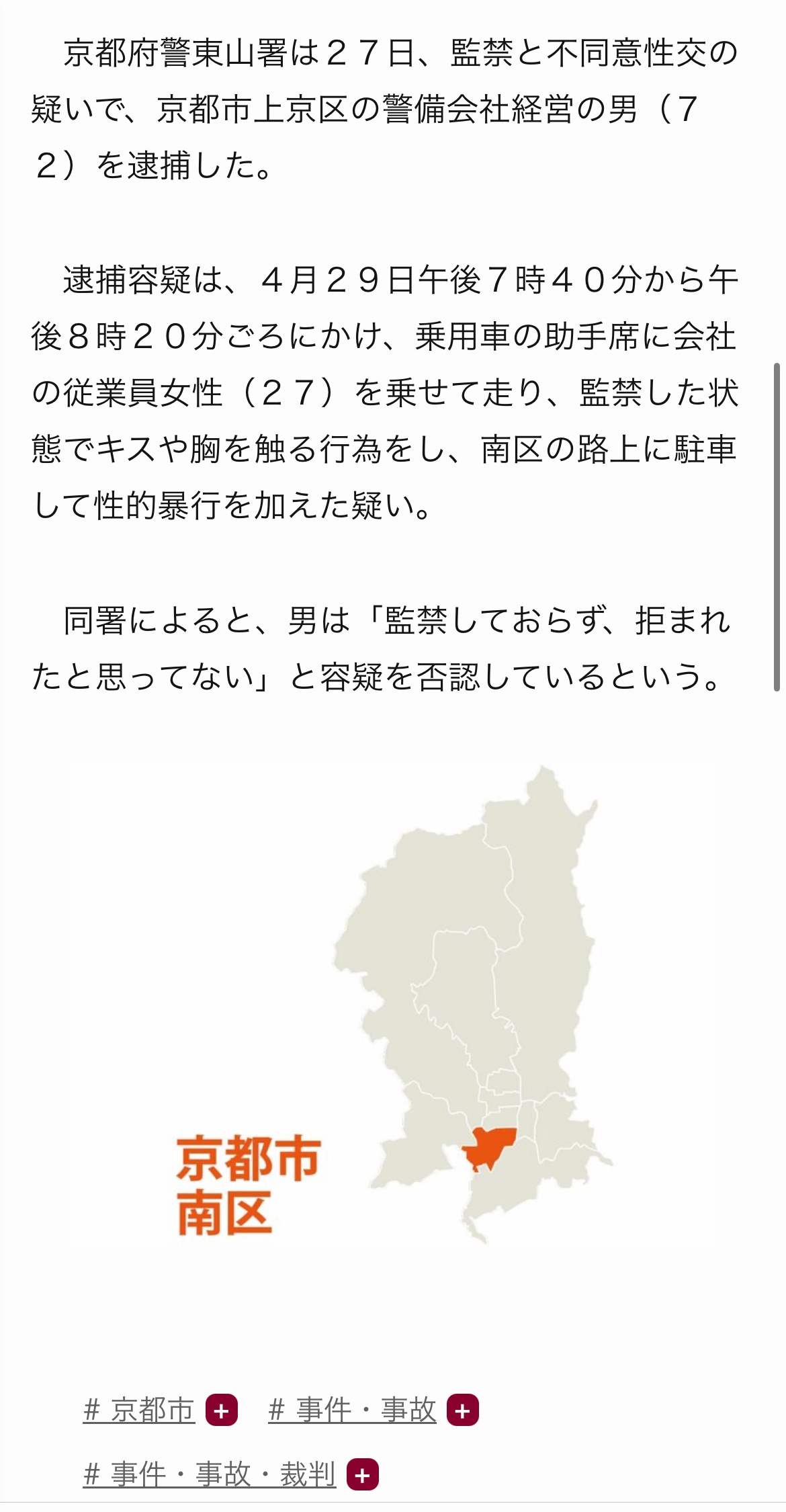 72歳の経営者の爺さん、従業員の27歳女性を車内に監禁しレイプ