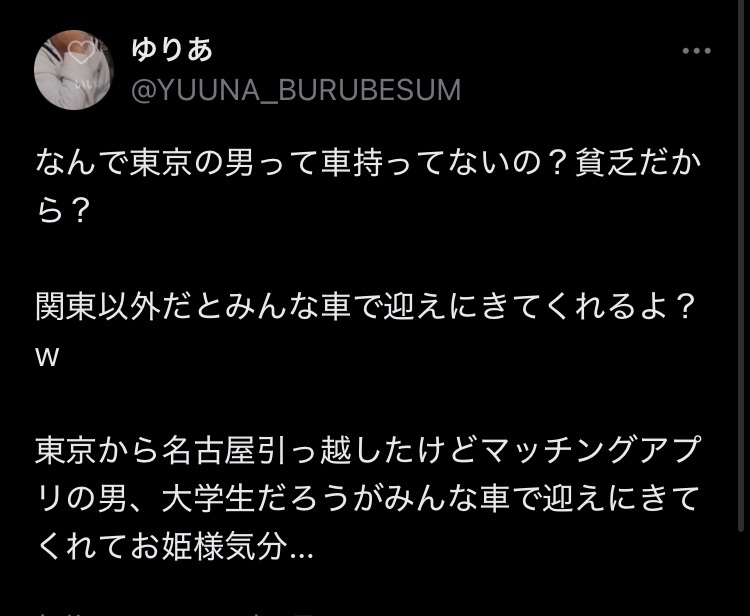 女性「なんで東京の男って車持ってないの?貧乏?」都民男に効いて炎上w