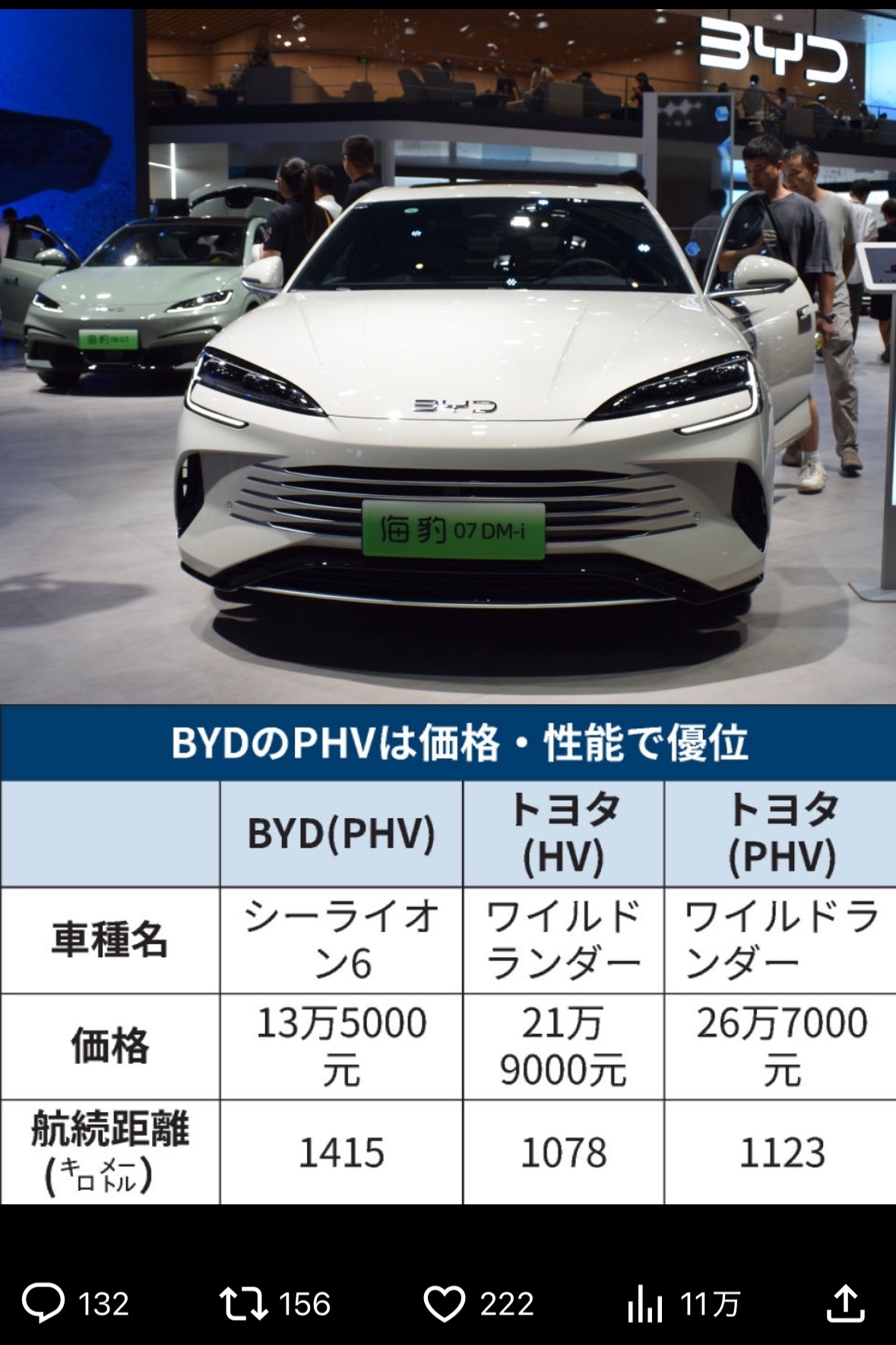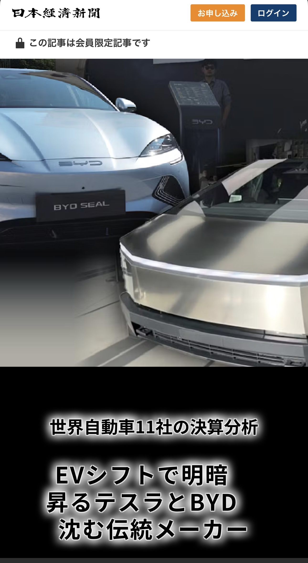 日経新聞「沈む日本メーカー、躍進する中国EV」 JAPの自動車産業、着々と終わりに近ずくwwwwwwwwwwwwwwww