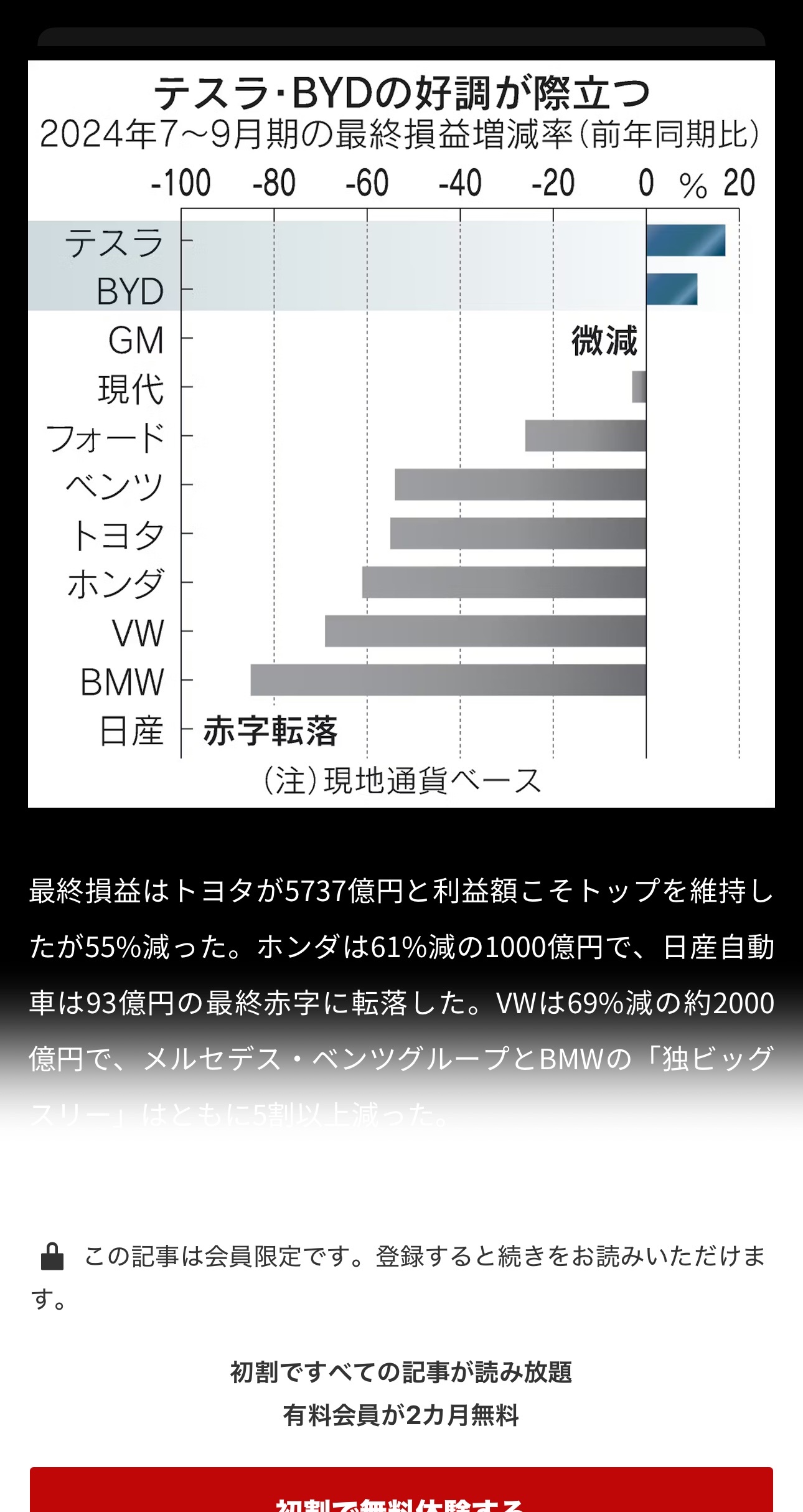 水素とか馬鹿なことを抜かしてる間に主導権を握られたネトウヨはまだ現実見れてないけど日本車の業績の下がり方がエグい