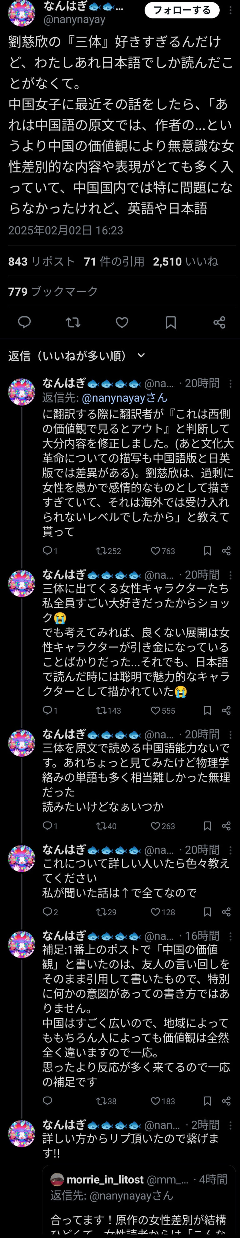 劉慈欣の三体本編もちょっと気持悪かったけど三体X読んだらもっとキモかったので相対的に平気になったw