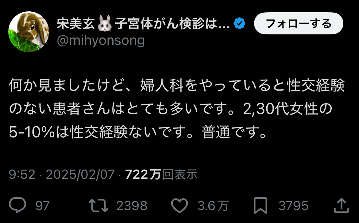 婦人科にくる人だけの割合だから実際はもっと多そう