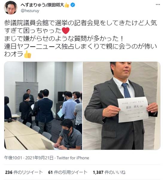 へずまりゅうがこの動物虐待韓国人を絶対に許すな。こいつは得体の知れない唐辛子豆を鹿さんに食べさせました」などとし、Aさんの写真付きのツイートをしたからだ。