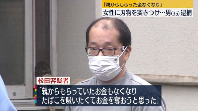 取り調べに対し、「親からもらっていた金がなくなり、タバコが吸いたくなって人から金を取ろうと思った」と容疑を認めています。