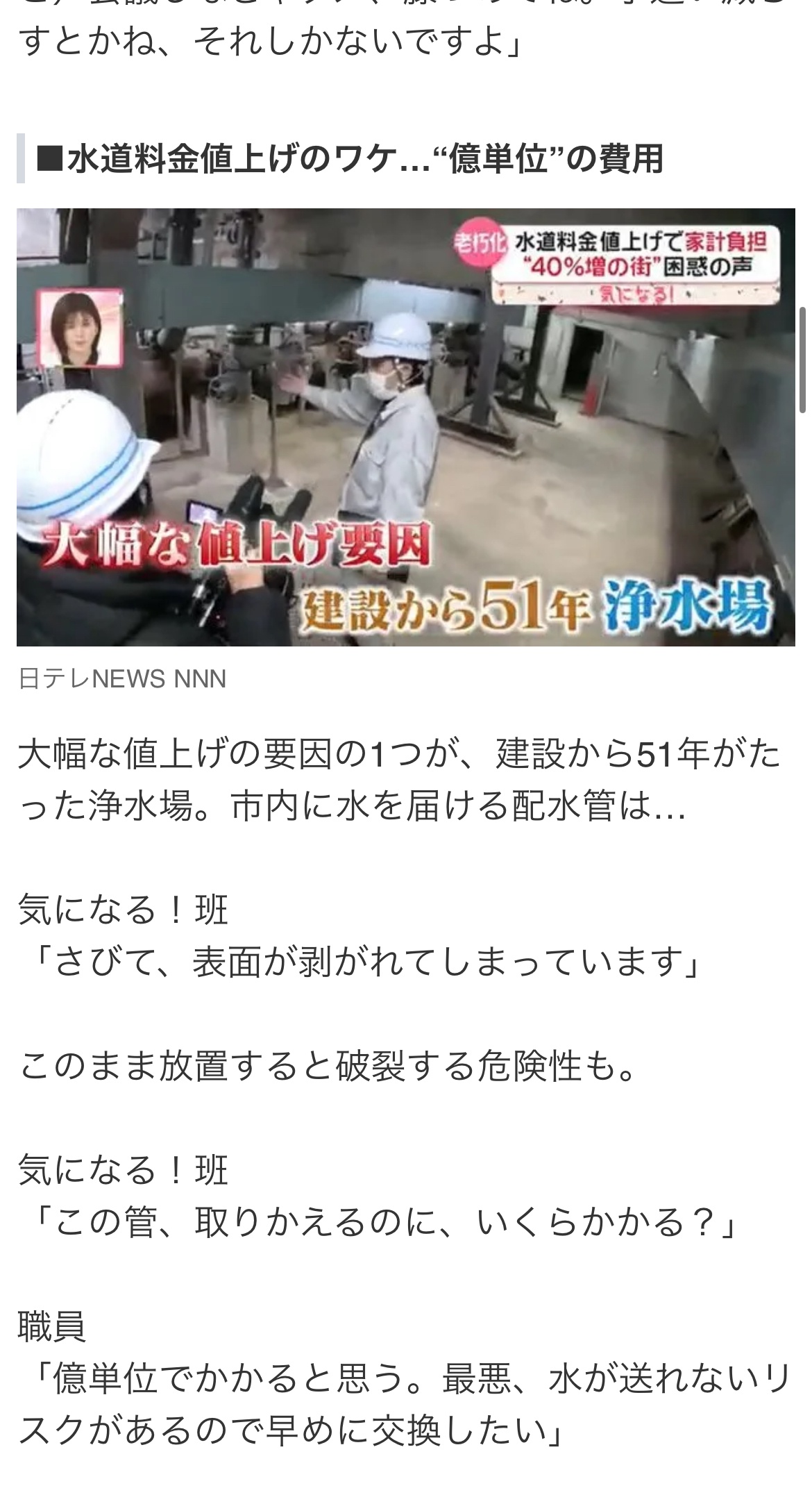 普段の水道代にインフラのメンテコストも入ってて、大規模な整備のための資金積み立ててるものじゃないの
