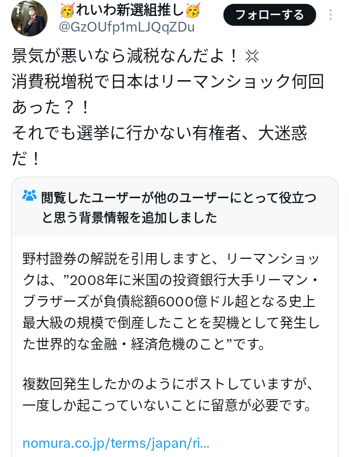 リーマン・ショックを“サラ”リーマン・ショックと思い込んでる異常者