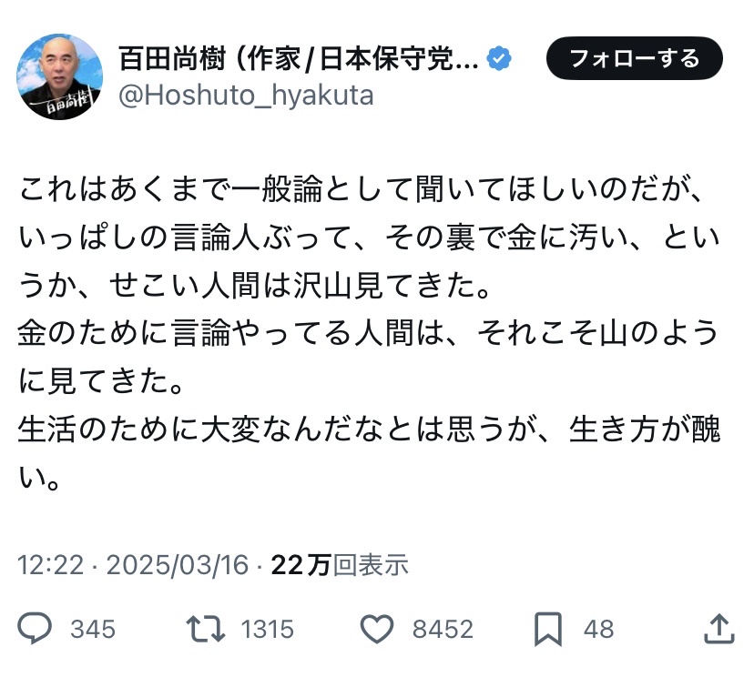 これで言論人を気取ってるのがほんと笑えるんだけど - 76 : 2025/03/16(日) 16:28:29.27 ID:5/h181xJ0