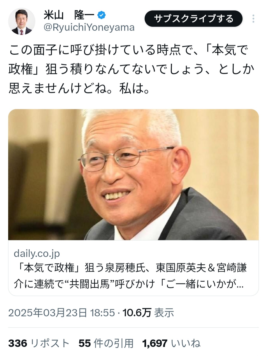 なんで米ちゃんは自民党政権の焼き直しにこだわるの? - 31 : 2025/03/24(月) 19:41:31.27 ID:mqyrVohY0