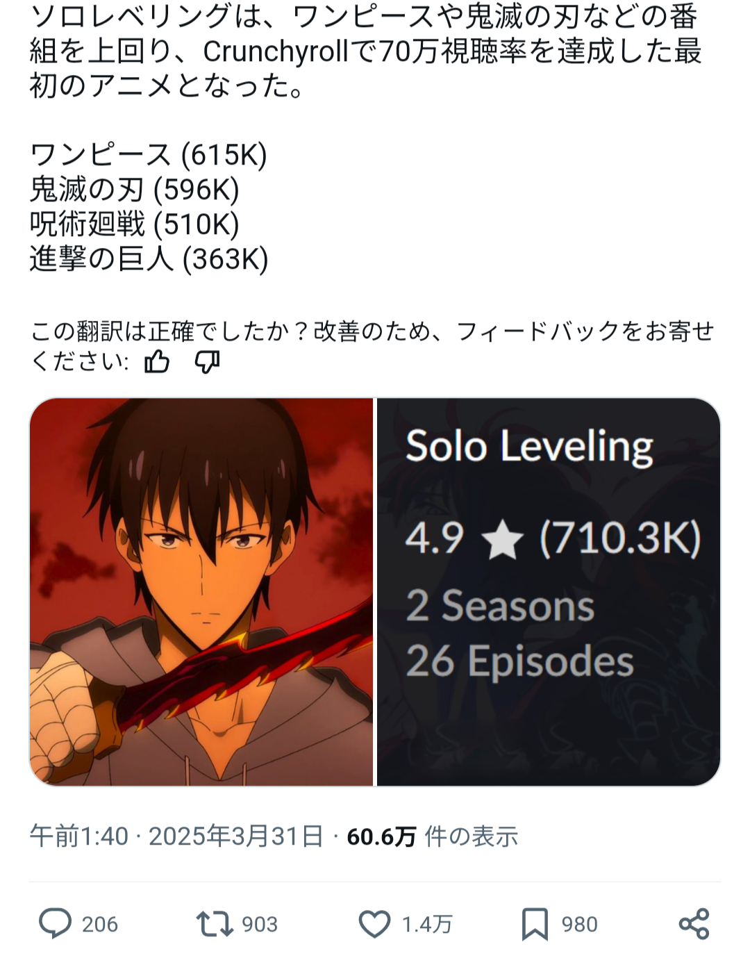 進撃や鬼滅みたいなジャップトップ層でも勝てないってのが辛いね