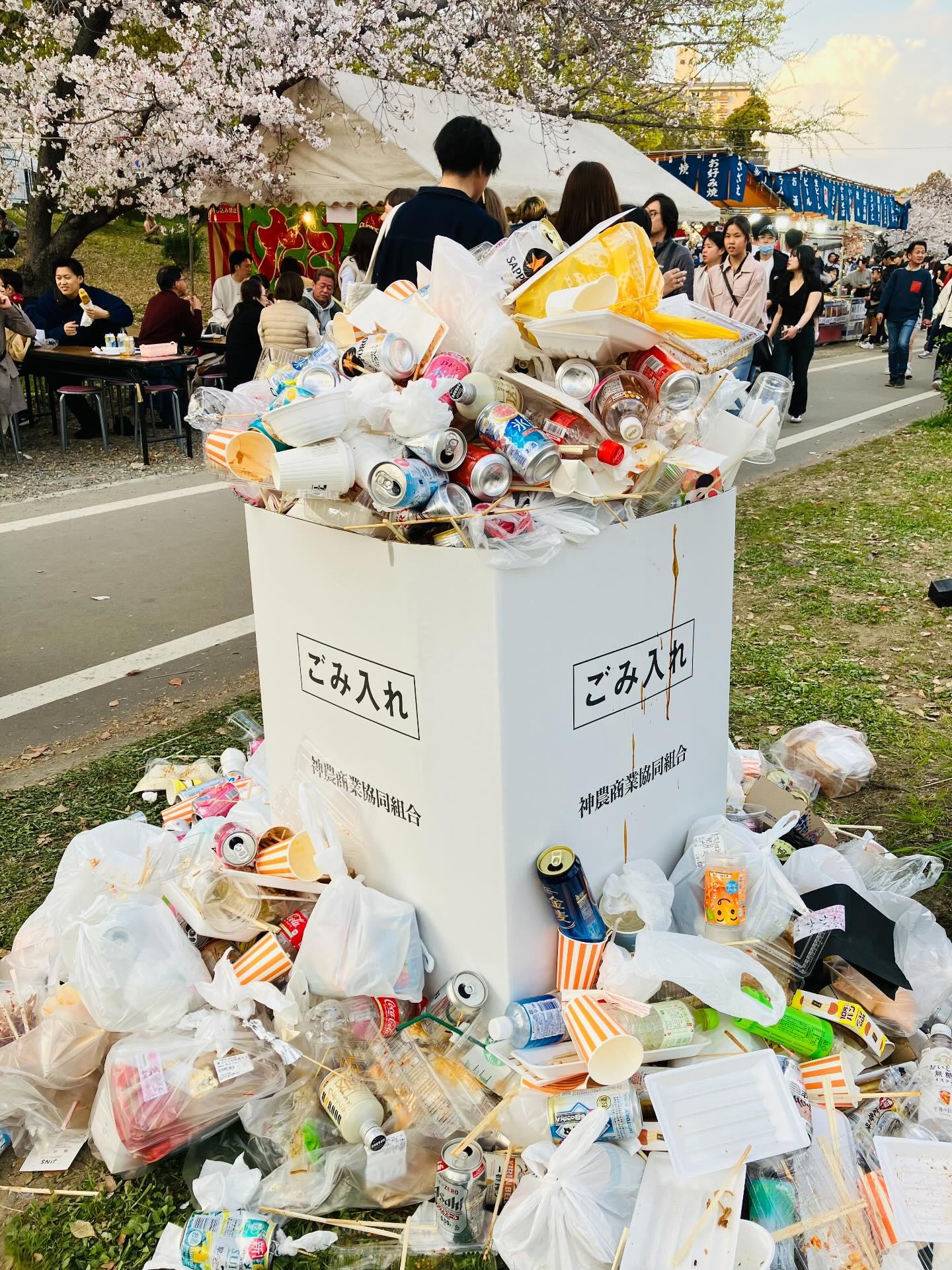 町中のゴミ箱は維持・回収コストがかかるというのはわからんでもないがこういう一時的なイベントでゴミ箱を少なくするのは意味わからん