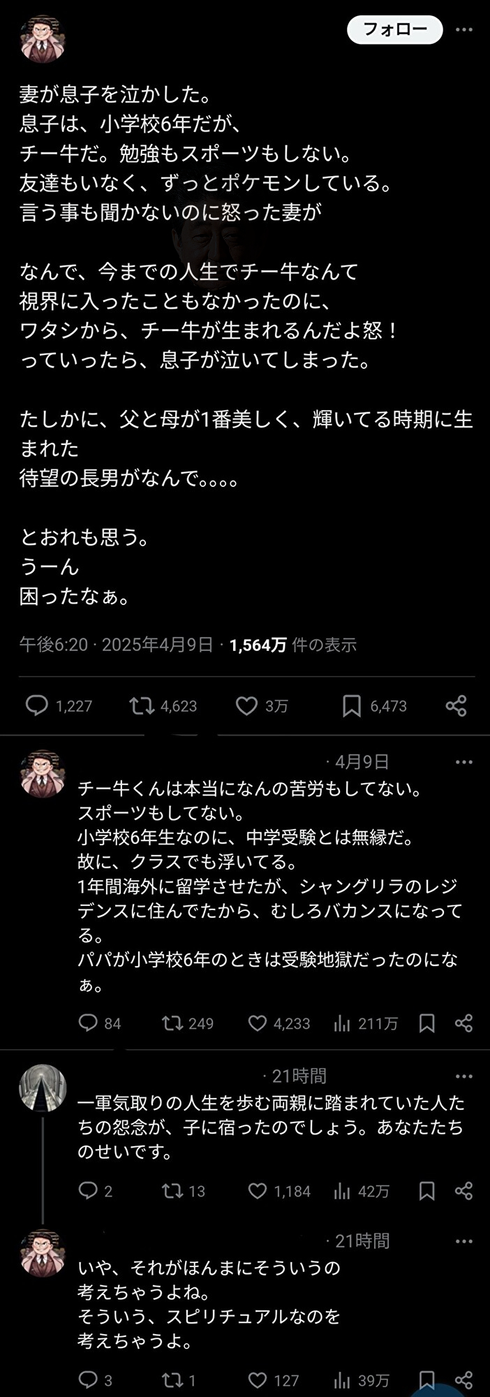 チー牛は優秀だから優秀な親から誕生するんだよ