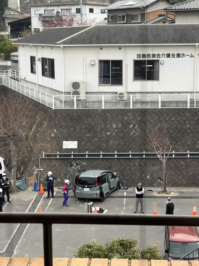 尾道署によると、車は駐車場に入った後、速度を上げたまま直進し、のり面に突っ込んだという。