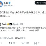 女の子「人間の男性よりgrokの方が女性の味方なの、虚しい現実だな……。」