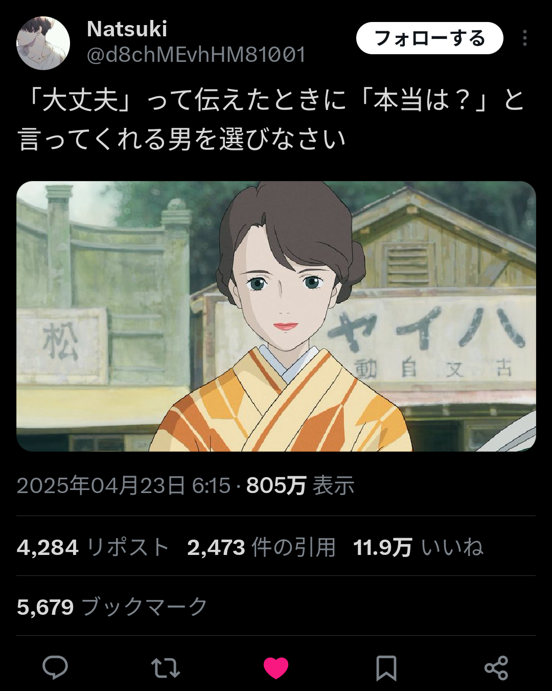 まんさん「大丈夫と伝えたら、”でも本当は違うんだよね?”と返してくれる男性だけを選びましょう」奇跡の12万いいね❤