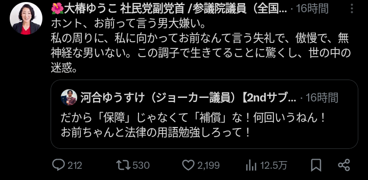 社民党副党首「我社民党の副党首ぞ。誰に向かってお前言うとんねん」って事やぞ - 37 : 2025/04/26(土) 13:58:10.90 ID:BXVaIQrEd