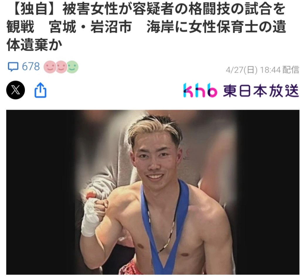 岩沼の保育士死体遺棄事件の容疑者「佐藤真蓮」、キックボクサーでしかもイケメンだった