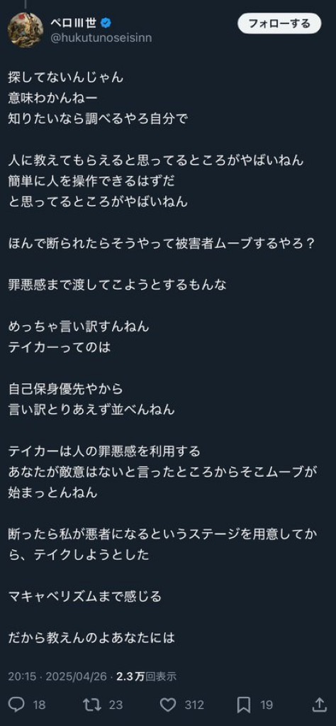 ソース貼らない言い訳でテイカーだのマキャベリズムだの書いちゃうのが痛々しい