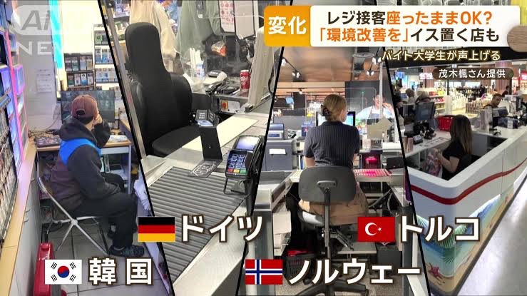 ヨーロッパ各国「椅子に座ってお喋りしながら働いて時給3000円です」 ジャップ「色々制限されながら働いて時給1300円です」