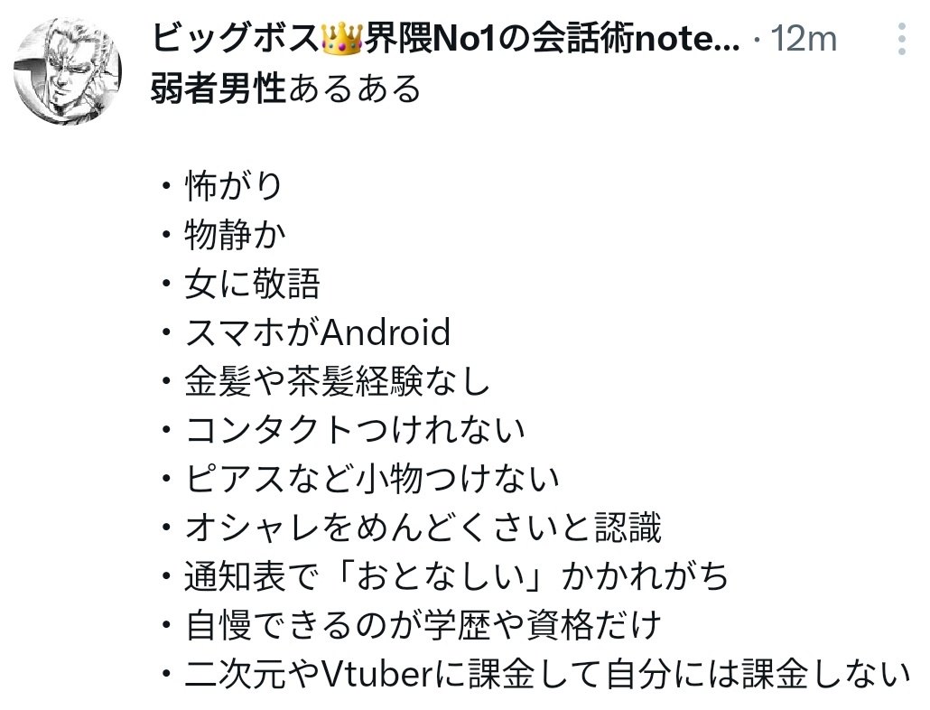 弱者男性好きすぎやろ