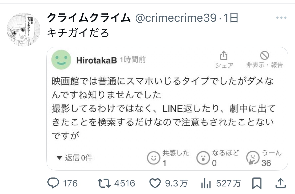 上映前に消してねってアナウンスあるのにガン無視して知らないアピールなのかな🤔