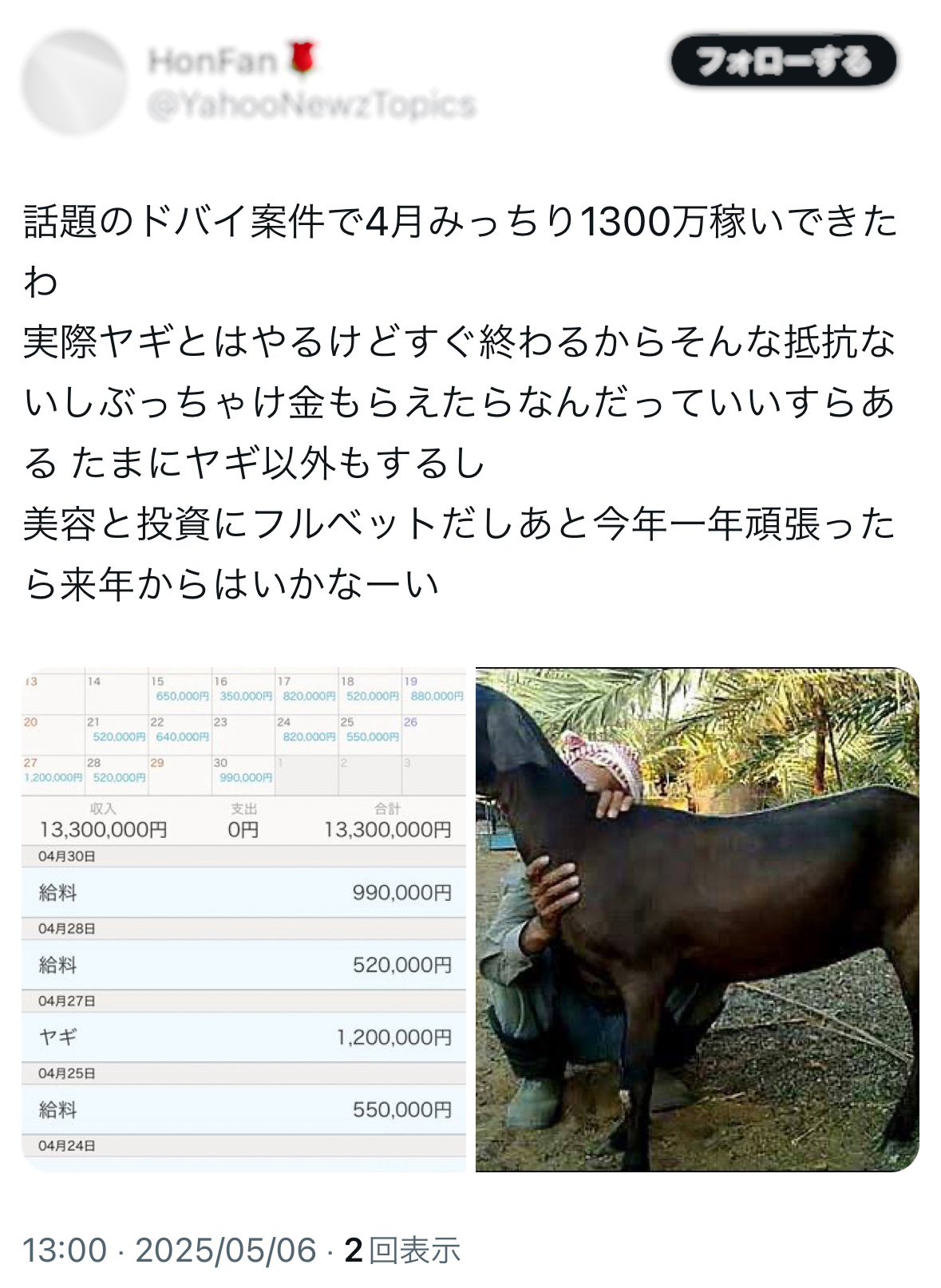 ドバイの富豪「なんか思うてたんと違う…(はい1000万ね)」