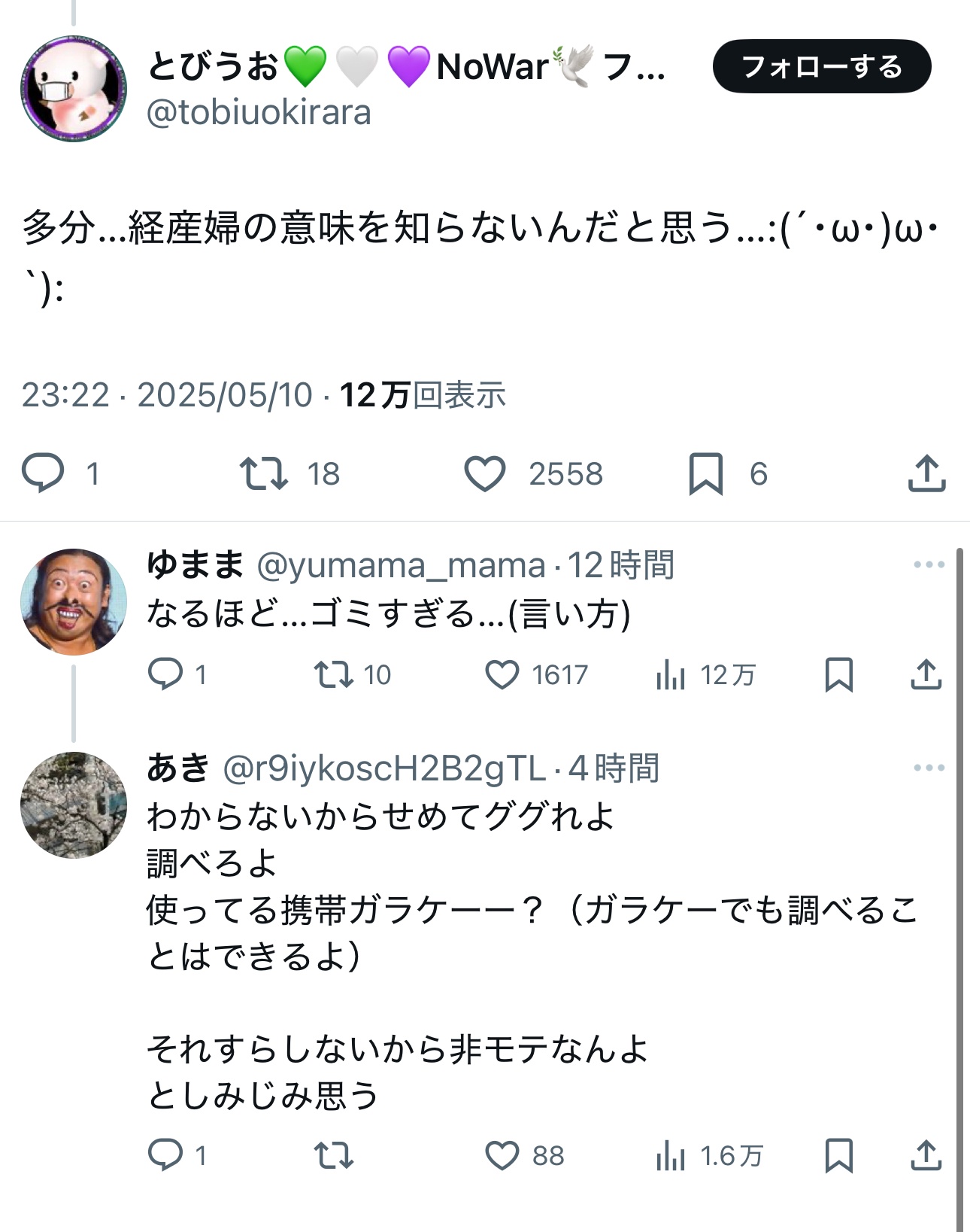 経産婦の字のどこに56すイメージあるのか… - 28 : 2025/05/11(日) 12:53:14.67 ID:v+Uj4T7e0