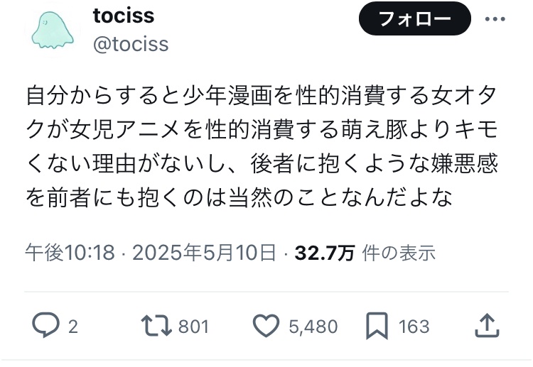 でもそれを嬉々として取り上げて女オタクの話にしてしまうやつはさらに一段キモい