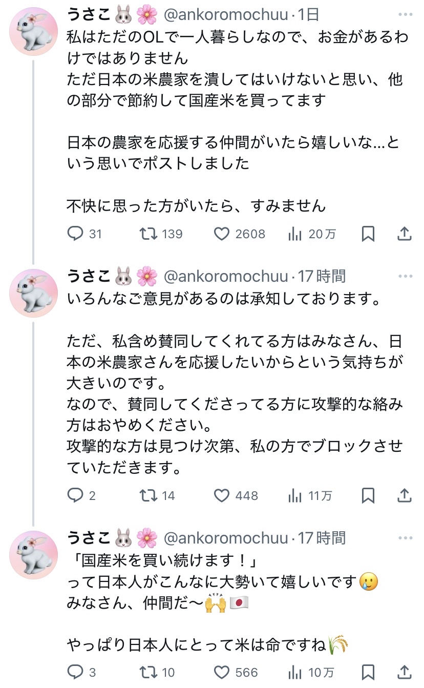 農家を応援って言っても限度があるし今の価格に対して農家は相応には儲かってないでしょ他は儲けてるみたいだけど