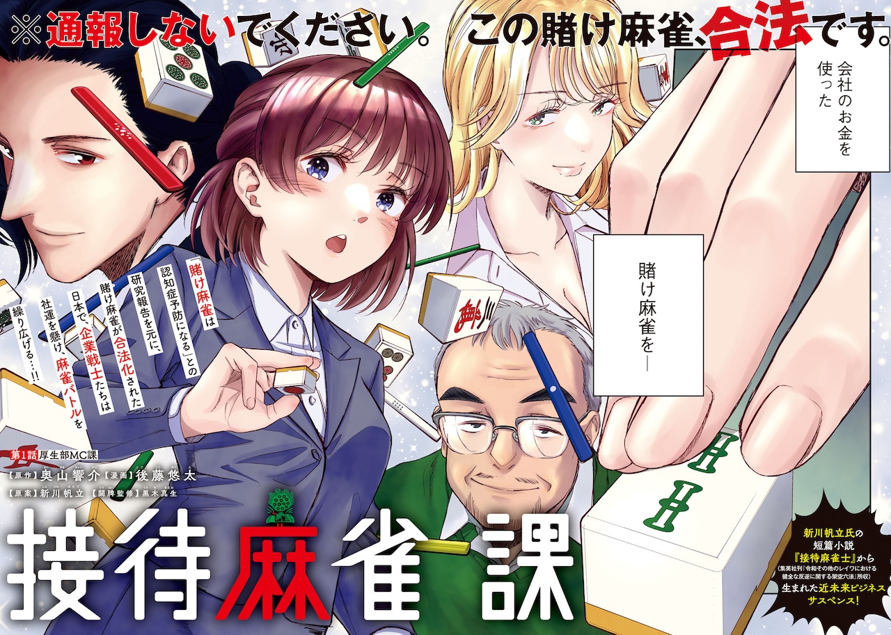 新川帆立氏の短篇小説『接待麻雀士』(集英社刊『令和その他のレイワにおける健全な反逆に関する架空六法』所収)から生まれた近未来ビジネスサスペンス! 超本格派麻雀新連載『接待麻雀課』(原作 奥山響介/漫画 後藤悠太)が、本日5月15日(木)発売の「モーニング」24号にて堂々開幕となりました!