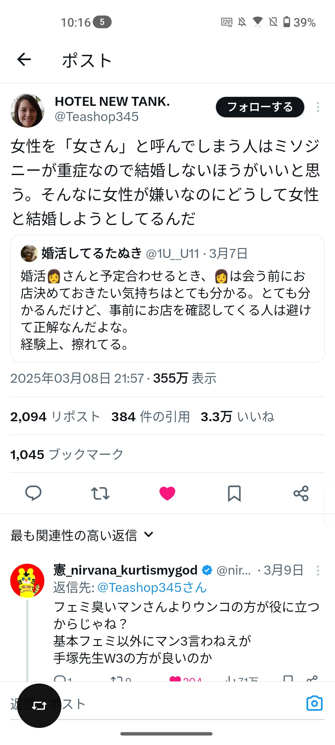👩、ブチギレ3.3万いいね「女性を”女さん”と呼んでしまう男の人は、ミソジニーが重症です!」