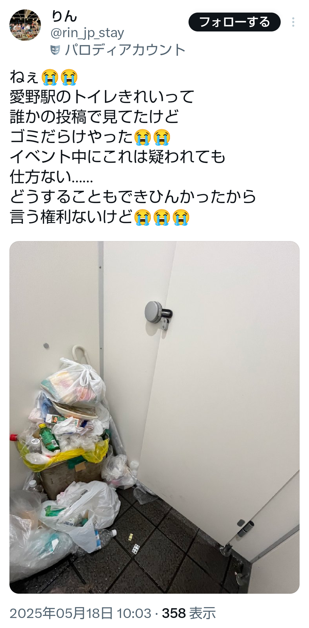 汚物入れにもペットボトルだのおにぎりの包みだのストッキングだの棄てて頭おかしいんじゃないかと思う
