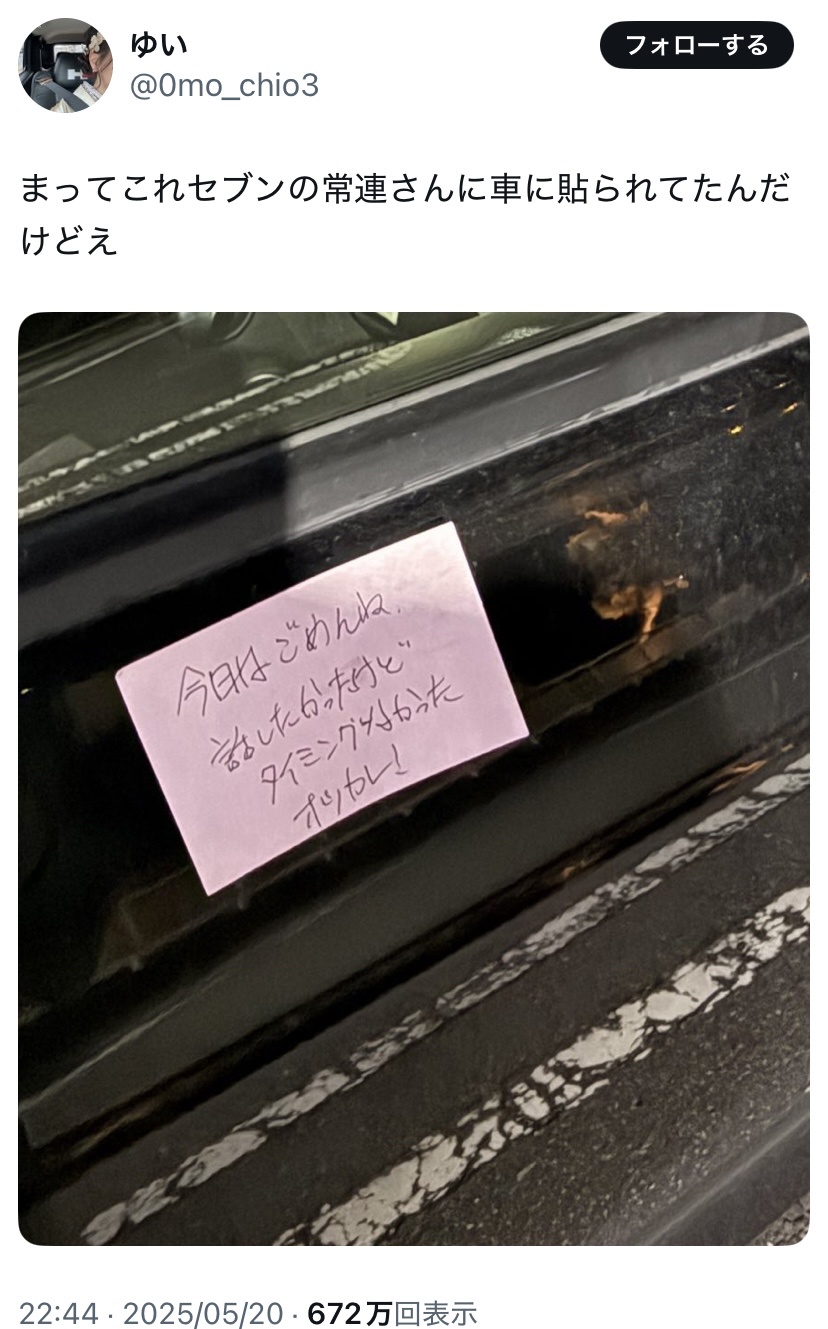自家用車を特定されてんの怖すぎだろ - 73 : 2025/05/21(水) 20:40:54.28 ID:oGaoJNGV0