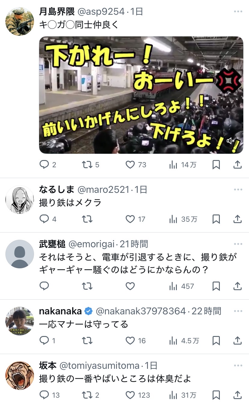 撮り鉄のマナーを批判されてるのは認識してるんだね