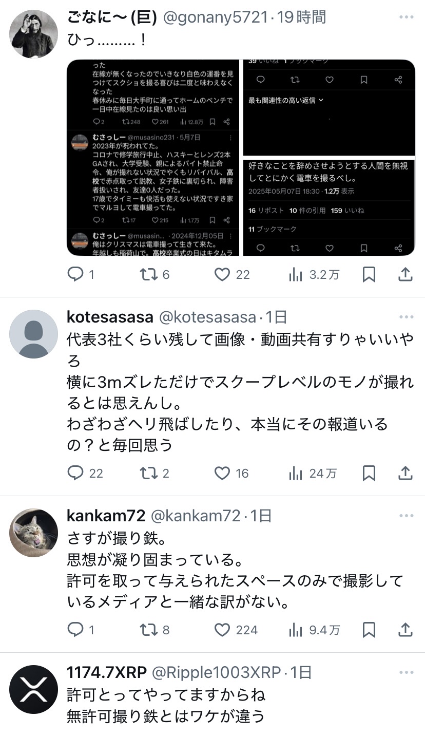 これ良くてどっちも悪になるだけでどのみち撮り鉄の株は回復しないよね