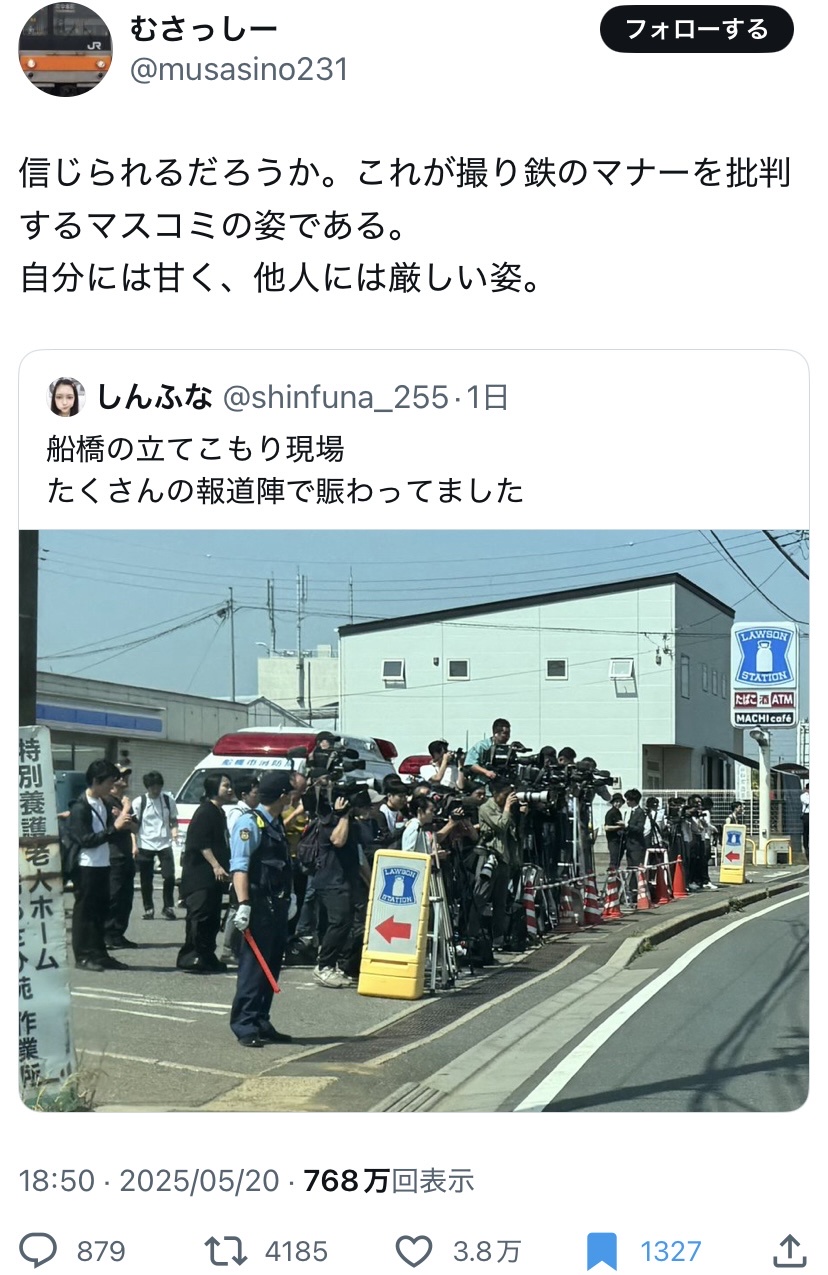 普通の日本人「撮り鉄を批判してるマスコミの方がマナー悪いだろ💢」→ボロクソ叩かれて炎上