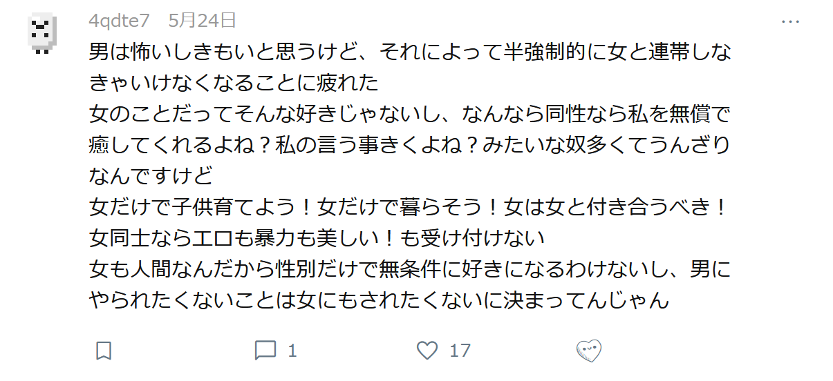 【悲】👩フェミさん、男が嫌いとかオタ嫌いとかの前に『人間が嫌い』だった