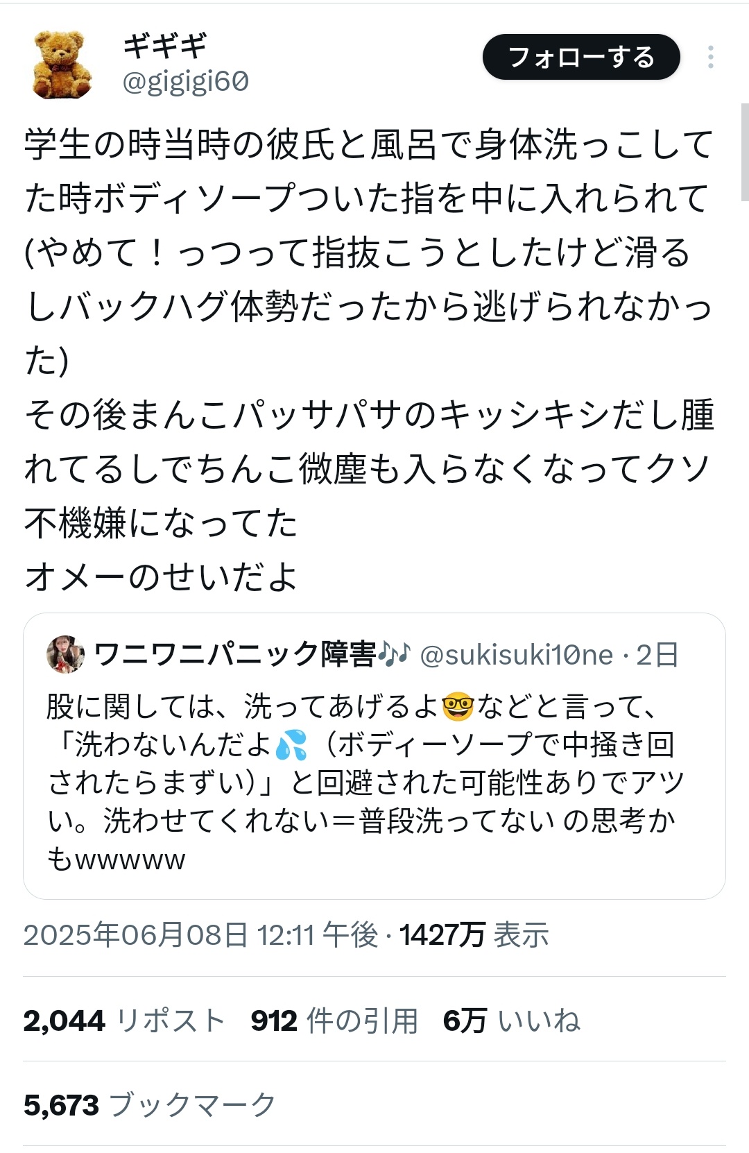 これ男女ひっくり返して「チンポはデリケート!洗っちゃダメ😡」とか言ったらどうするんだろうな