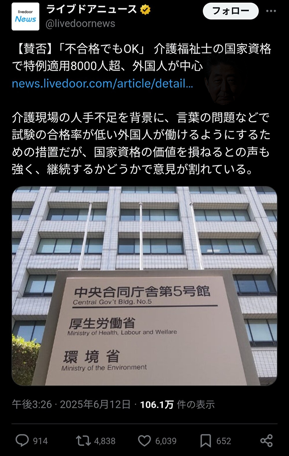 上級の入る介護施設の人材は豊富だからかんけいない - 88 : 2025/06/12(木) 21:15:20.56 ID:6ie360zR0