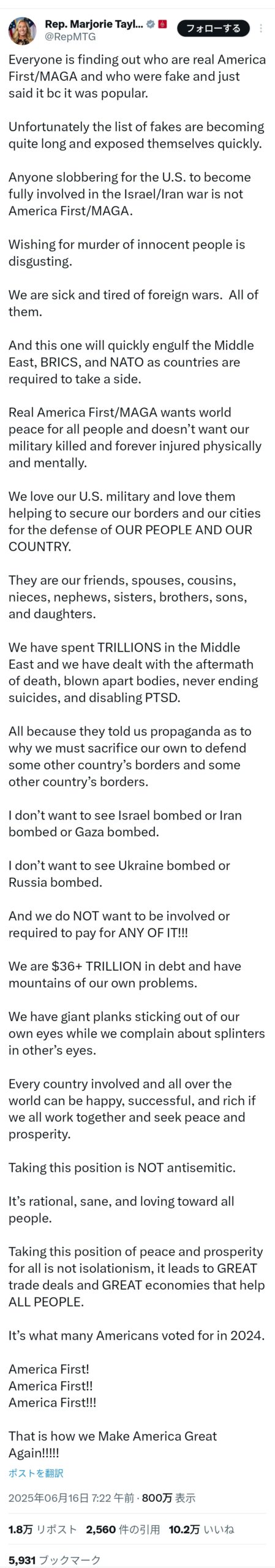 そんな者たちは、断じてアメリカ・ファーストではない!