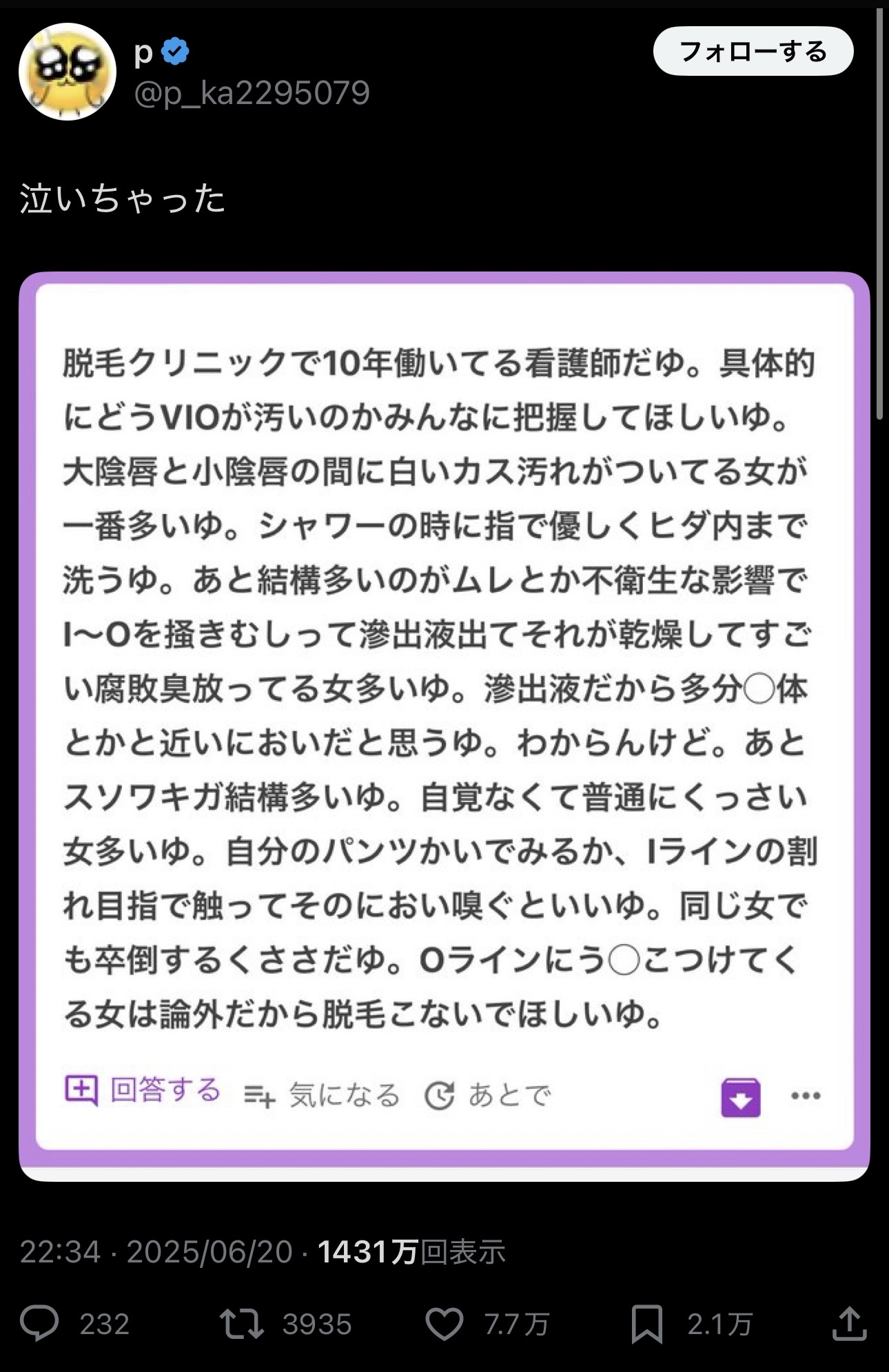 日本人女性さん、「日本女性のマ●コが臭い」との指摘に興味津々すぎてバズりまくるwwwwwwwwwwwwwwwwwwwww