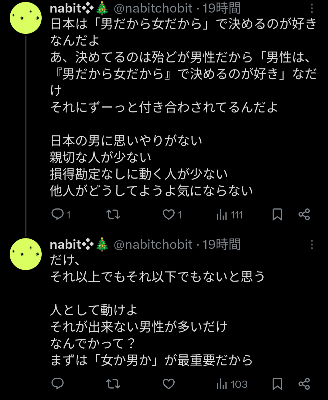 意識があるだけで男女関係なくゴミでは? - 25 : 2025/06/21(土) 16:13:25.66 ID:2bYMec9M0