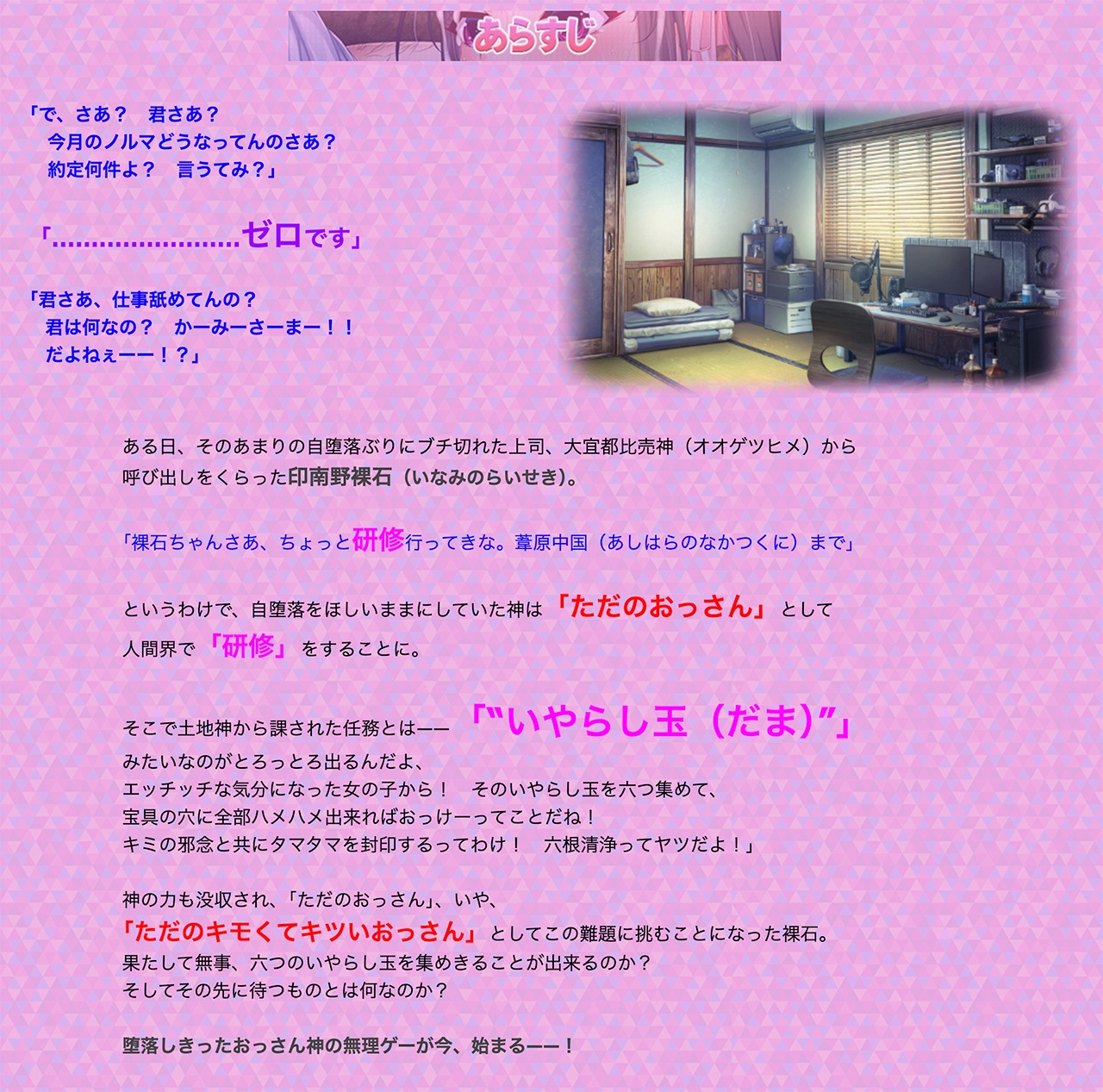新作エ口ゲ『一根不浄』神様の任務は女の子たちをエッチな気分にさせて“いやらし玉”を集めること。六つの玉を集めて六根清浄♥
