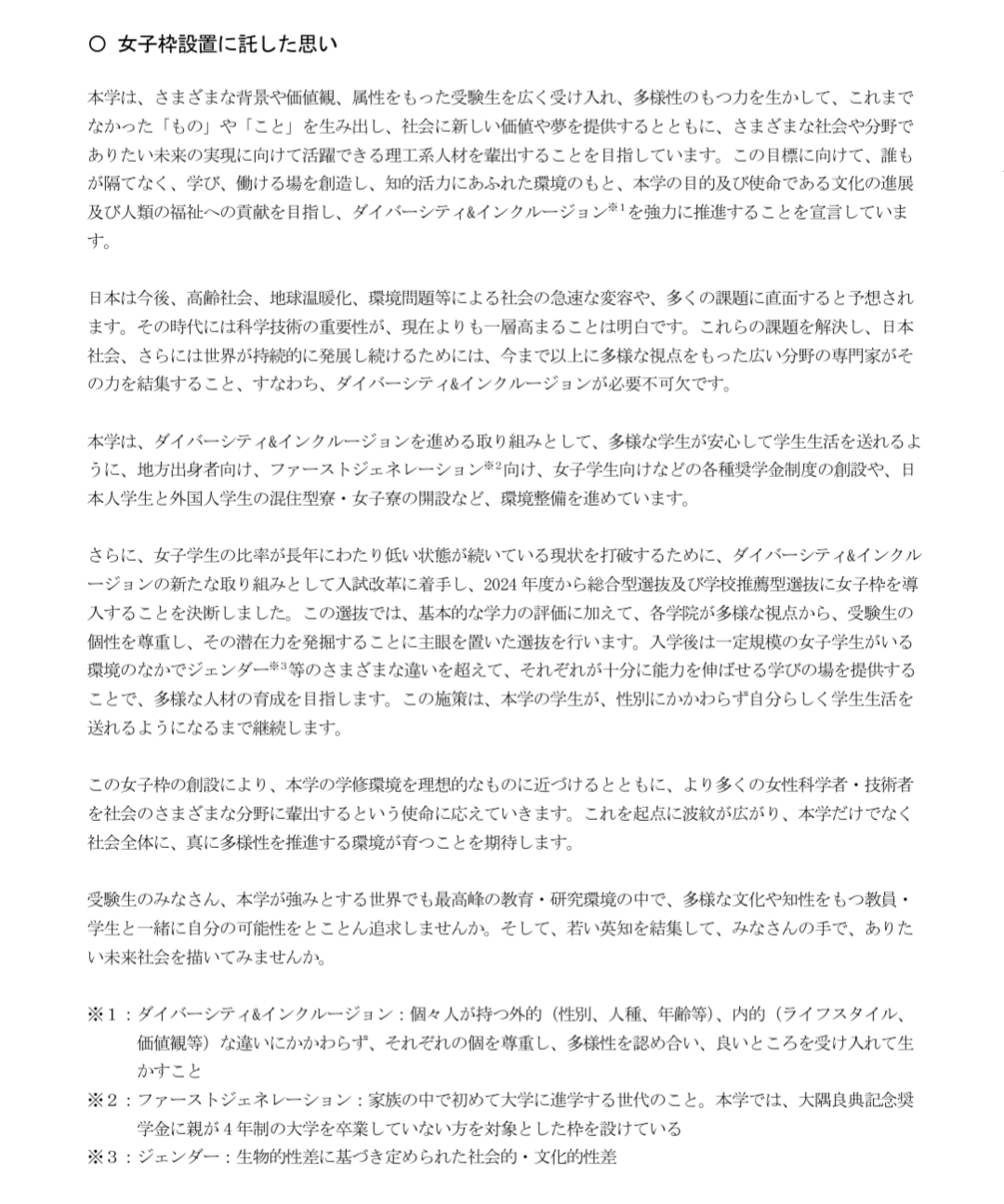 国立大が堂々と「女は馬鹿だから特別扱いします」って宣言してるんだからな