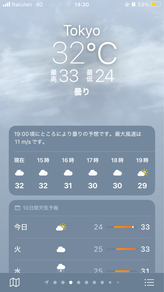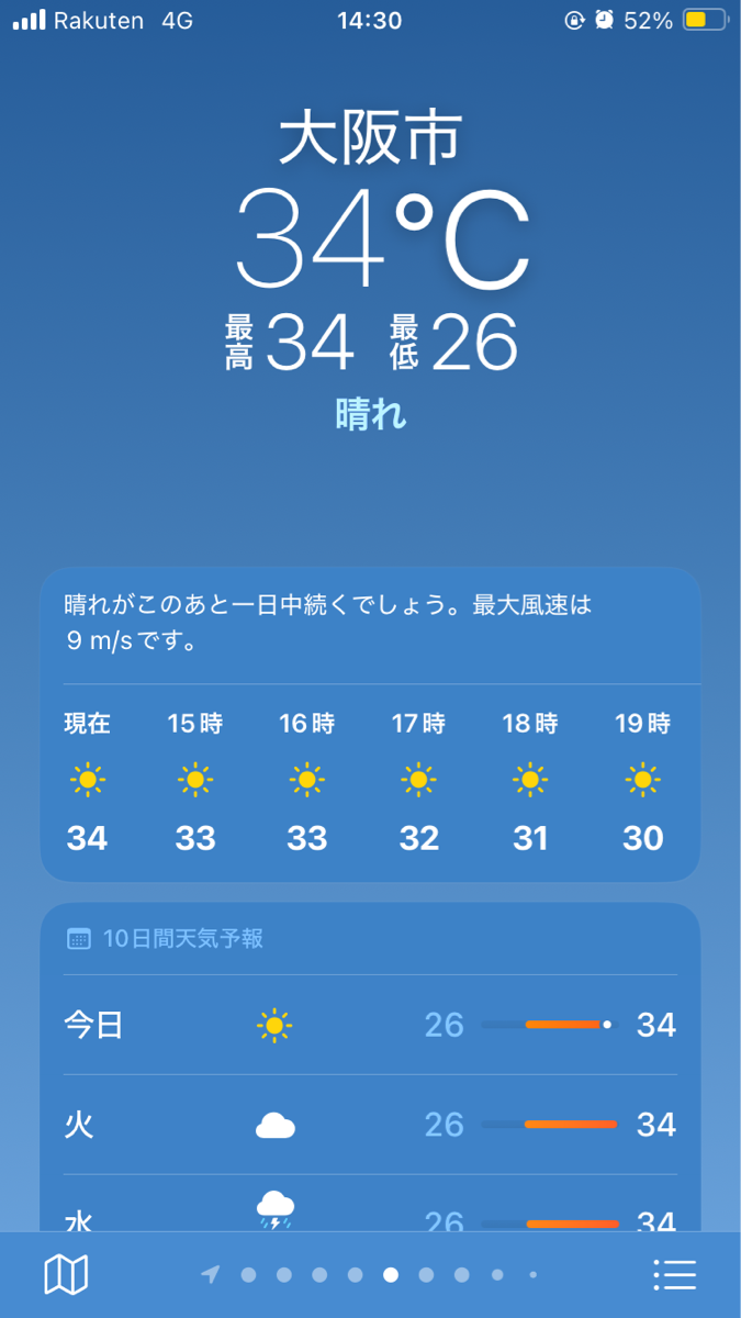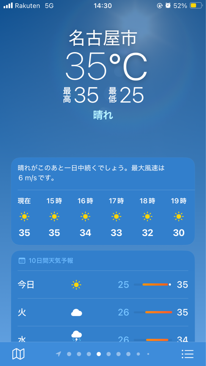 外の日陰の気温計45℃だわ意味わからん@埼玉
