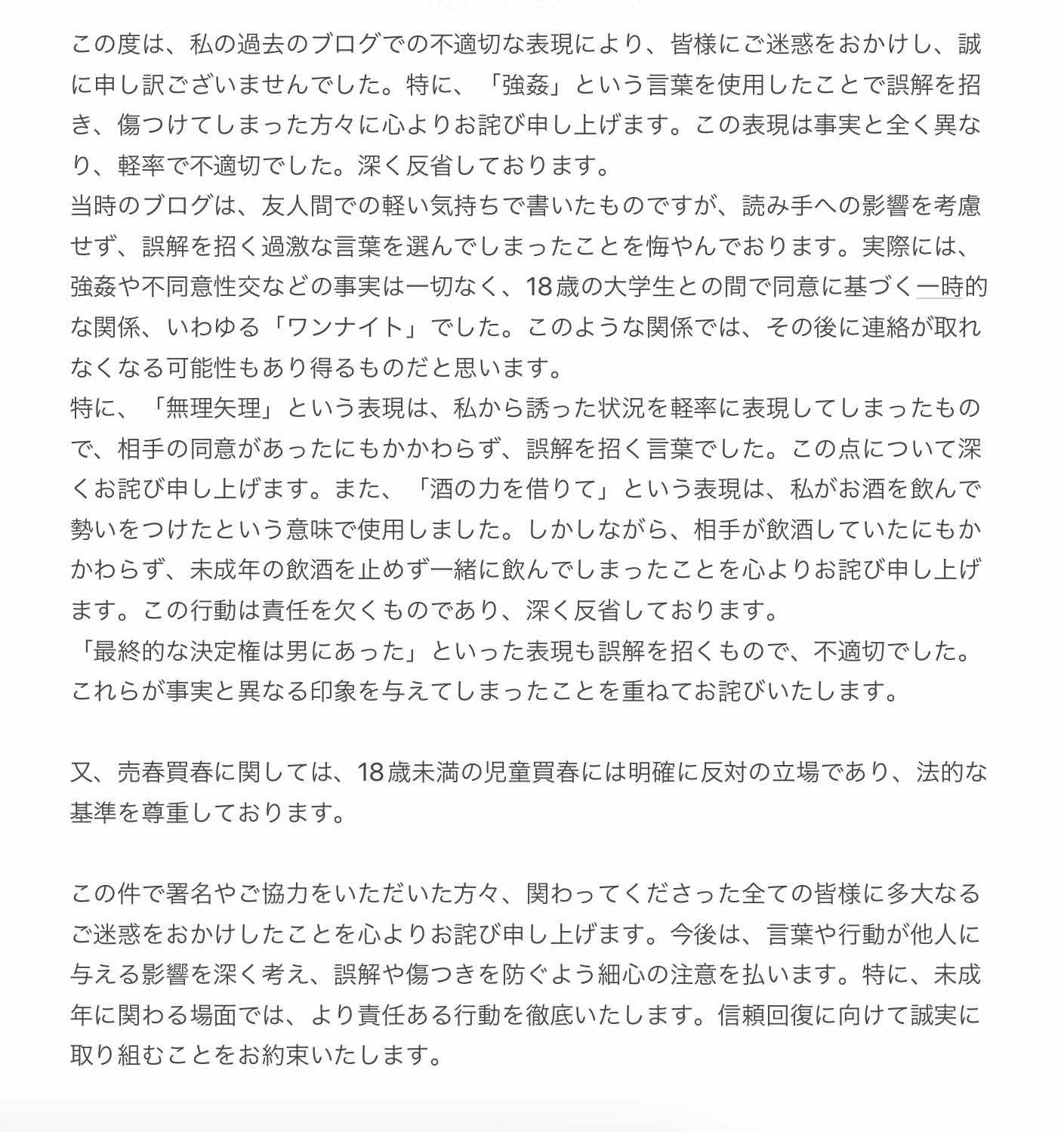 18歳と謎訂正してるのは何故?ブログ見てると明らかに買春行為だし