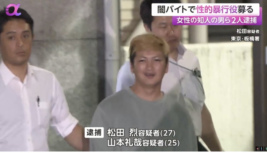 【東京】「女性に性的暴行してくれる人募集」3万円で闇バイトを募った松田烈(27)と、実行しレイプした山本礼哉(25)を逮捕